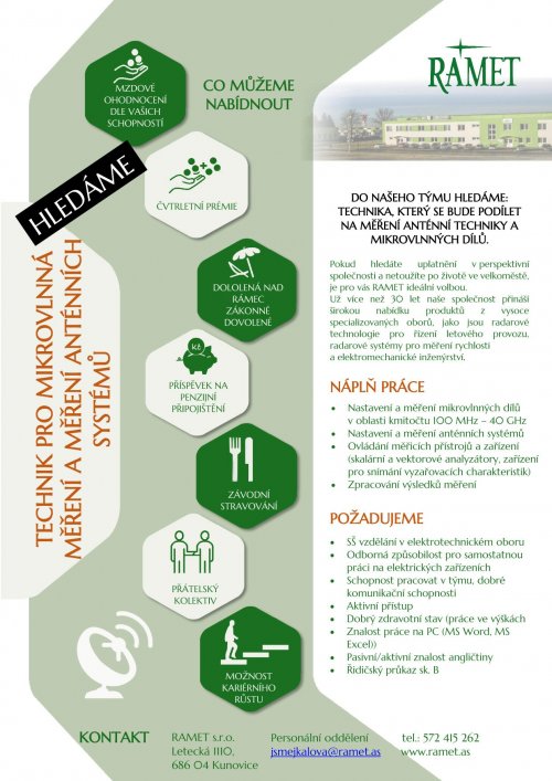 - Práci v oboru radiolokačních antén s více než 30letou historií na světovém trhu